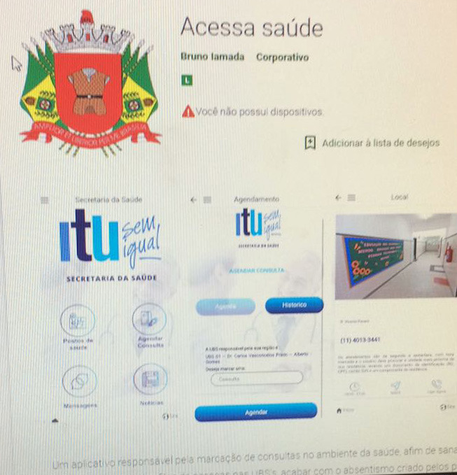 Trata-se do aplicativo “Acessa Saúde” (disponível para Android) que possibilita ao paciente o agendamento antecipado das consultas, exames e até vacinas, além do histórico dos agendamentos. O APP também disponibiliza a informação de qual UBS o paciente pertence mediante o endereço registrado.
