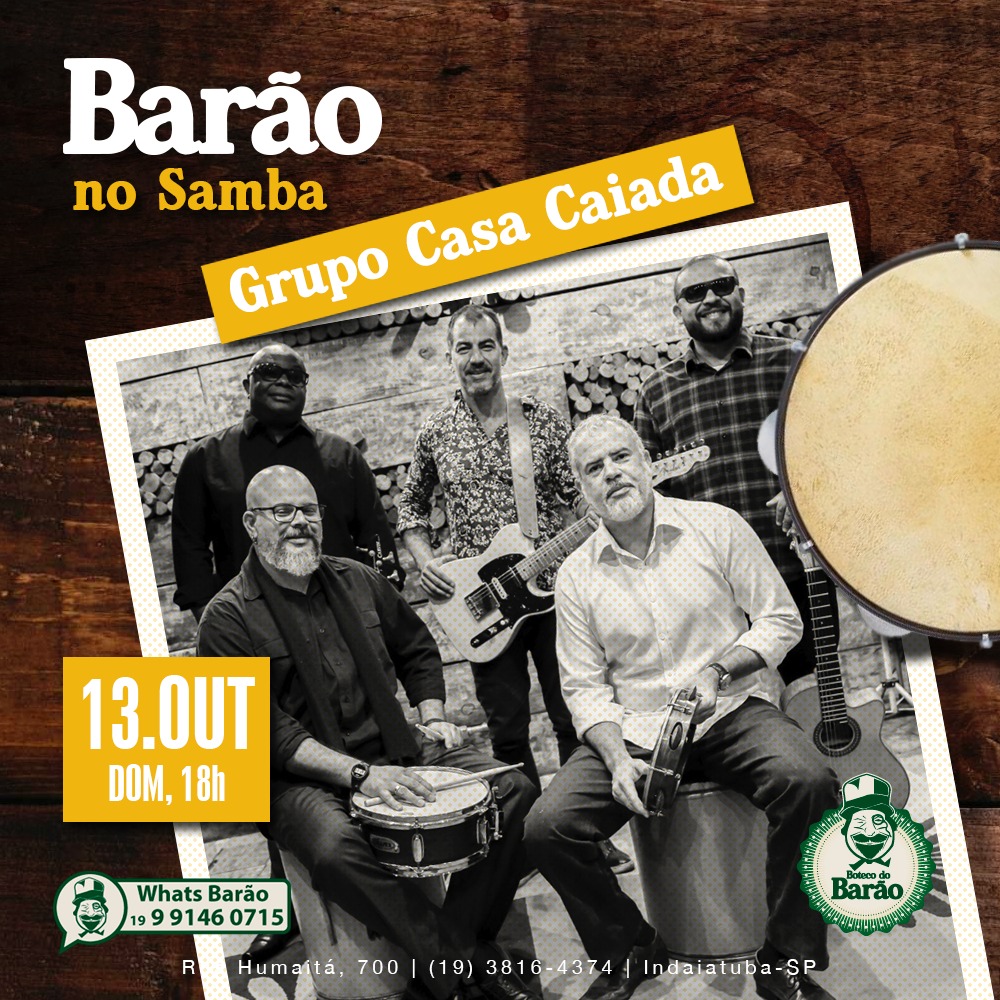 O grupo Casa Caiada estreia neste domingo, 13, no Boteco do Barão, em Indaiatuba (SP). O show, que inicia às 18h, reúne canções de diferentes vertentes do samba, com toques de outros gêneros regionalistas. Reservas estão disponíveis.