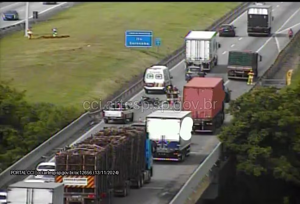 A faixa 2 e o acostamento precisaram ser interditados devido ao acidente. Foram registrados três quilômetros de congestionamento, do km 8 ao 11.
