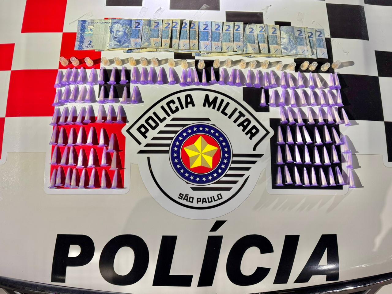 Na revista pessoal, os policiais localizaram uma pochete com 113 eppendorfs contendo cocaína, 22 porções de crack e R$ 34 em dinheiro. O suspeito foi conduzido ao Plantão Policial do Centro, onde permaneceu preso, autuado em flagrante por tráfico de drogas.